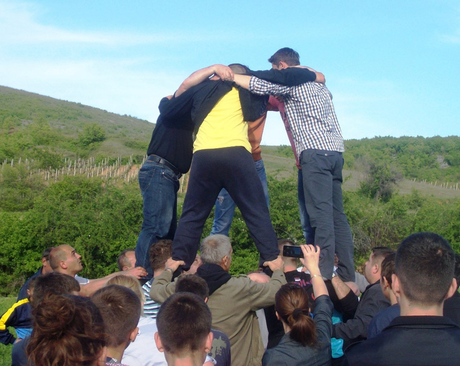 Док су се дечица окупила испред конака да се послуже колачима и соковима које је припремио дечански монах отац Кирило, мушкарци су почели са извођењем древног обичаја познатог као ,, бела вила“. За њима су се надовезали младићи и дечаци, обишавши неколико круга око цркве, а потом прелазећи преко оближње њиве са пшеницом, застали на заравни пред конаком и направили кулу уз песму:,, Бела вила град градила, троја врата саградила, прва врата од куд сунце, друга врата од куд југо, трећа врата од запада...“.