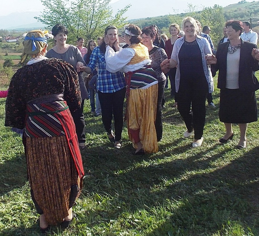 Сећам се још као дете сам долазила овде и гледала жене како играју. Говориле су да је то за здравље и напредак целога села, за родну годину. Ево и после толиких година мука и рата ми ту традицију нисмо оставили, сачували смо обичаје, али су и обичаји очували нас. Иако је у селу сада мање људи него пре рата, ми смо захвални Богу што смо остали и мислим да баш ова црква Свети Јован на улазу у село није дозволила да сви одемо. А сви смо се те 1999. спремили да идемо. Колона је била дуга од сеоског игралишта па до изнад Св. Јована... И ево, иако смо много тога претрпели, ми смо ту и обичаји се настављају. Ове године су дошла и моја два унука да виде обичаје. А долазе и људи са разних страна да сликају и снимају како ми ово играмо - испричала нам је Славица Ђуричић из Велике Хоче.