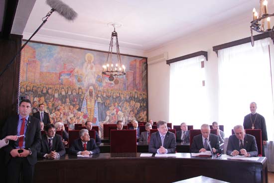 са дванаесте редовне седнице Скупштине Друштва за подизање Храма Светог Саве одржане 29. маја 2014. године у Патријаршијском двору у Београду