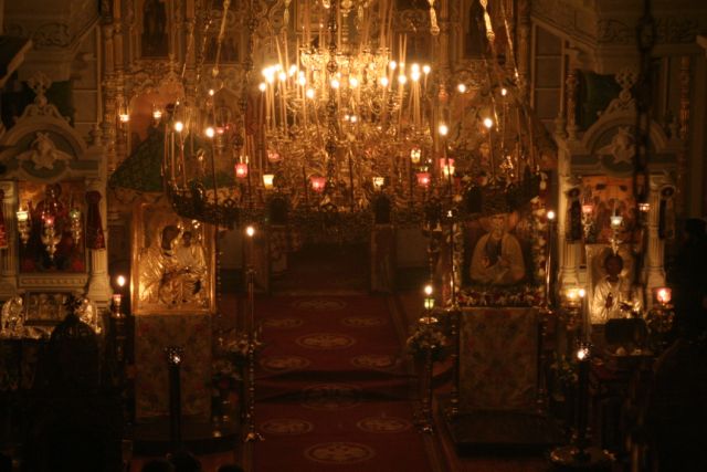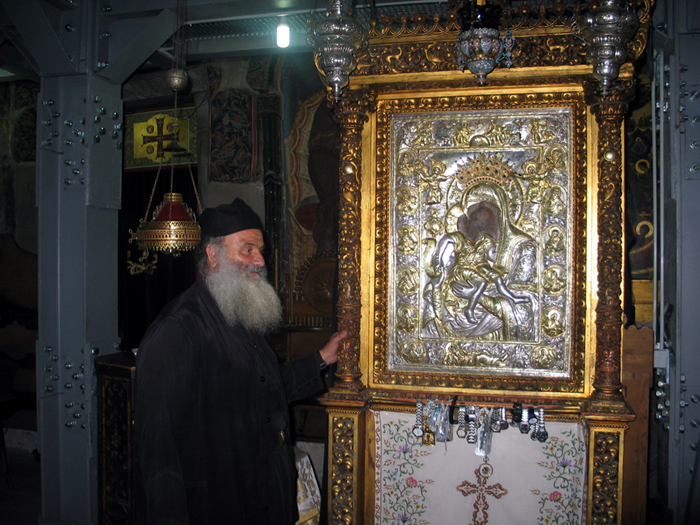Справа, у столпа, – чудотворная икона Божией Матери «Сераитисса», которая вся увешана различного достоинства медалями параолимпийской сборной Греции в благодарность за помощь и исцеления.