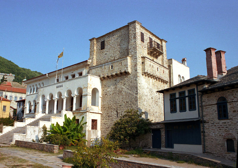 Через несколько минут были уже в Карее. Это маленький городок – столица Святой Горы, в которой находятся представительства всех афонских монастырей и органы самоуправления монашеской республики: Священная Эпистасия (исполнительный орган Афона, состоящий из четырех представителей монастырей и переизбирающийся ежегодно) и Священный Кинот или Протат (собрание представителей всех 20-ти афонских монастырей, прот – председатель этого монашеского «парламента»).