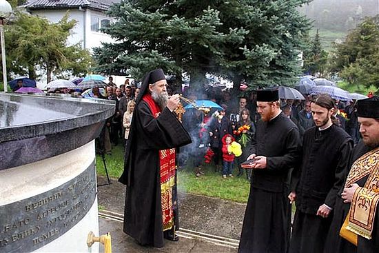 "Извршисмо овај помен, драга браћо и сестре, помолисмо се Богу за покој душа муринских жртава, које невино пострадаше од безбожне натовске силе која је преко ових и многих жртава у нашој отаџбини, преко муринског моста и преко многих мостова, преко обданишта и болница које је бомбардовала, дошла до свог циља да одузме дио наше отаџбине и то њен насветији дио – свето Косово и Метохију“.