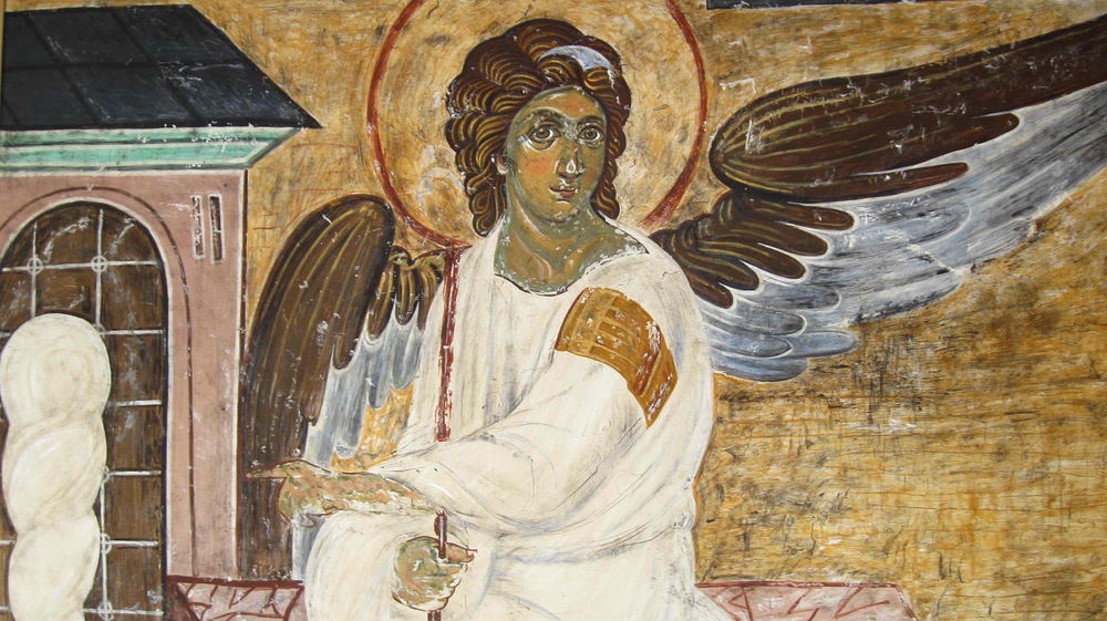 И вот, придя, жены-мироносицы нашли камень отваленным от гроба и «увидели юношу, сидящего на правой стороне, облеченного в белую одежду; и ужаснулись. Он же говорит им: не ужасайтесь! Иисуса ищете Назярянина распятого? Он воскрес! Его нет здесь. Вот место, где Он был положен. Но идите, скажите ученикам Его и Петру, что Он предваряет вас в Галилее; там Его увидите, как Он сказал вам. И, выйдя, побежали от гроба; их объял трепет и ужас, и никому ничего не сказали, потому что боялись» (ср.: Мк. 16: 5–8).