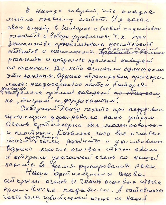 В народе говорят, что каждая метла по-своему метет. И я начал свою службу в батарее с боевой подготовки расчетов и взвода управления, так как при знакомстве с ними заметил нечеткость ответов и исполнения. Тренировались расчеты в стрельбе прямой наводкой по танкам. Кое-кто считал излишними эти занятия. Однако тренировка пригодилась: неоднократно потом батарея успешно стреляла прямой наводкой по «тиграм» и «фердинандам».