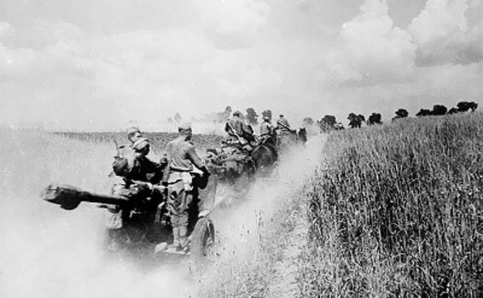 Ночью командование дивизии перегруппировало войска и наполнило стрелковый батальон и полк, которые я поддерживал огнем своей батареи. Этой же ночью переправились танки первого мехкорпуса. А с рассветом наши войска пошли в атаку. Хорошо им помогали летчики. Штурмовики волнами утюжили немецкие войска, а истребители смело их защищали.