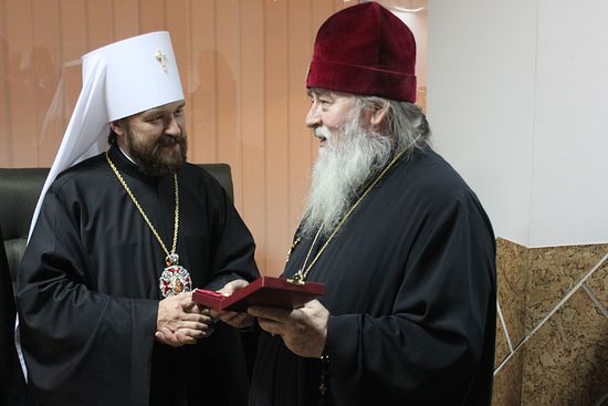В ответном слове митрополит Ириней просил передать горячую благодарность Предстоятелю Русской Православной Церкви за поздравление и награду, выразив глубокое сожаление тем, что представитель Его Святейшества не допущен к участию в церковных торжествах в Днепропетровске. В свою очередь, митрополит Иларион тепло поздравил митрополита Иринея с 75-летием и пожелал ему доброго здоровья и помощи Божией в его архипастырском служении в тяжелое для Украины время.