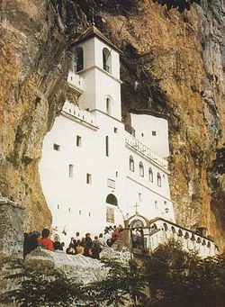 Манастир Острог – Високо изнад Бјелопавлићке равнице, на њеној западној страни, између Никшића и Даниловграда, при једној окомитој стијени, налази се манастир Острог. Иако су прве основе овог манастира дали неки испосници, који су у острошким пештерама нашли погодно место за свој усамљенички и подвижнички живот, његовим првим оснивачем с правом се сматра св. Василије Острошки, митрополит Захумско-херцеговачки.