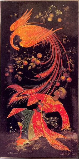 Знаменитое панно «Жар-Птица», написанное художником в 1965 году и многократно повторенное в копиях, стало символом искусства Холуя. Другое панно – «Баян» (1972) – наполнено глубокими размышлениями о судьбе русского народа, его поэзии, величии духа и трагической истории государства Российского.