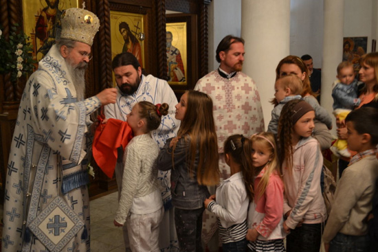 Епископу Теодосију овом приликом је саслуживало двадесет свештеника и три ђакона а цркву је испуниo верни народ међу којима су били и представници општинске власти града Лепосавића. Након прочитаног Јеванђељ беседио је архимандрит Јован игуман манастира Црна Река. Светом Причешћу приступили су верни међу којима највише деце.