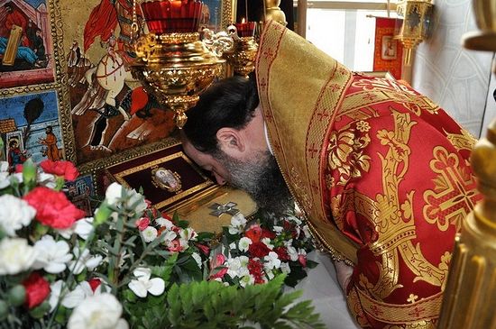По прибытии в Свято-Троицкую Сергиеву лавру владыка совершил молебное пение у раки с мощами прп. Сергия, а затем поклонился вместе с паломниками мощам прп. Никона Радонежского, которые покоятся в Никоновском приделе Свято-Троицкого собора, и святыням, находящимся в Серапионовой палате. На протяжении нескольких десятилетий в эпоху советских гонений в Серапионовой палате, которая находится в непосредственной близости от Троицкого собора Троице-Сергиевой лавры, хранились многие святыни Русской Православной Церкви. .