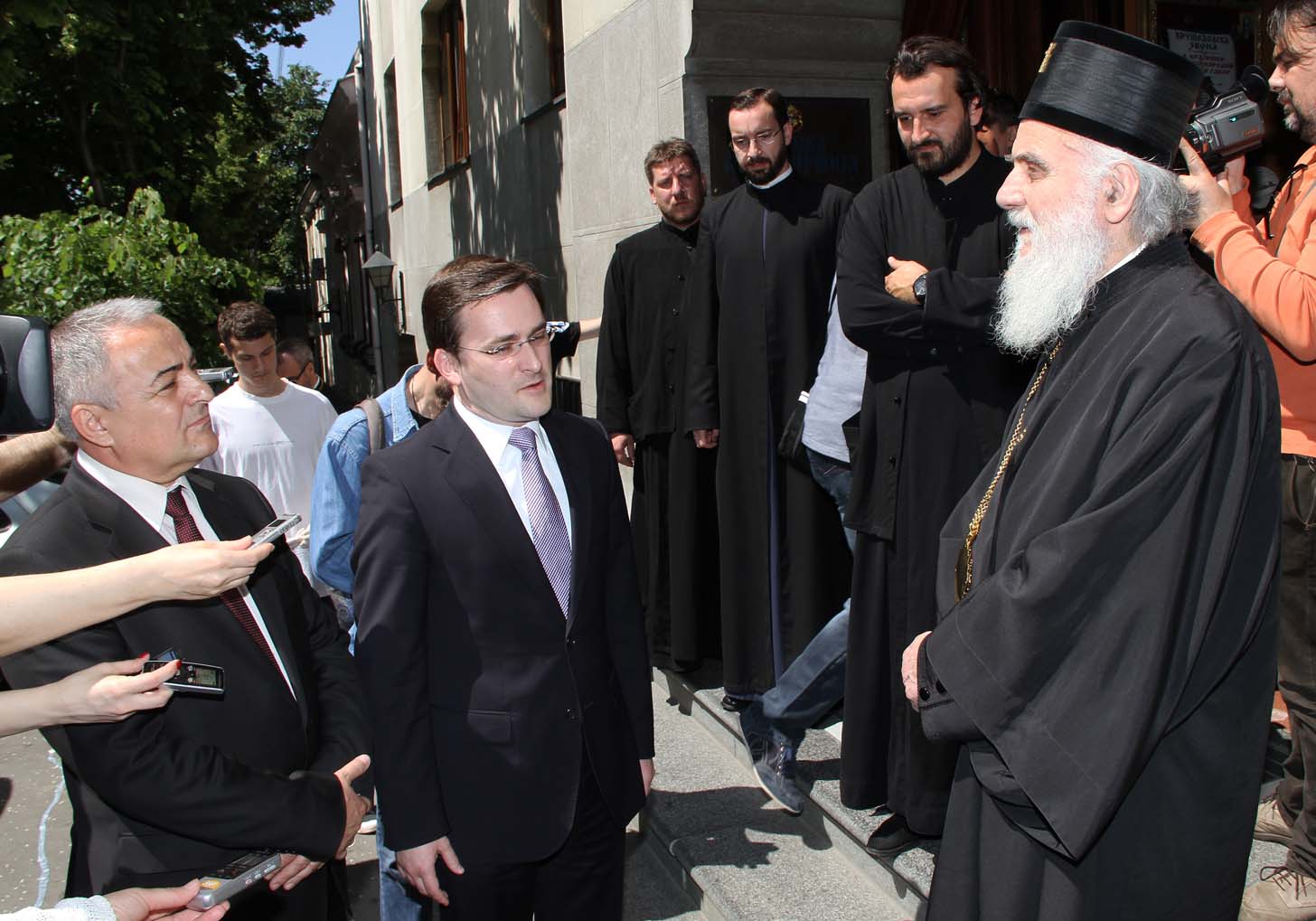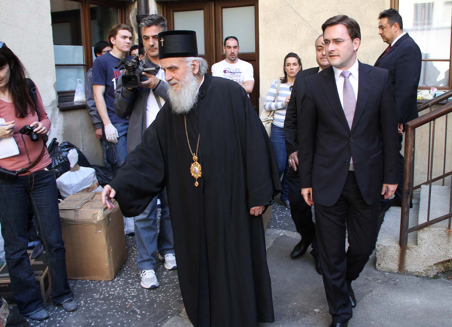 У згради Патријаршије Његова Светост Иринеј, министар правде у Влади Републике Србије Никола Селаковић и директор Управе за сарадњу са Црквама и верским заједницама др Милета Радојевић обишли су данас младе који разврставају помоћ за угрожене и непрекидно су на располагању на овом првенствено хришћанском делу, врше значајну мисију и пројављују посебно хришћанско прегалаштво. У наставку су се обратили медијима.