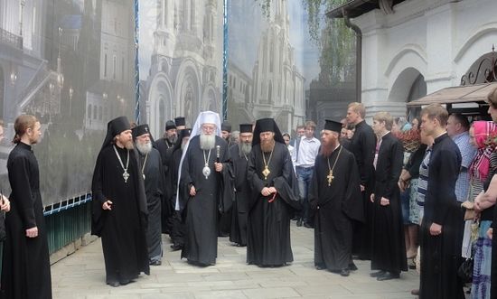 Еще раз, Ваше Святейшество, благодарим Вас и Ваших спутников за то, что во время визита в Москву, в Россию Вы нашли время приехать к нам в Сретенскую обитель».