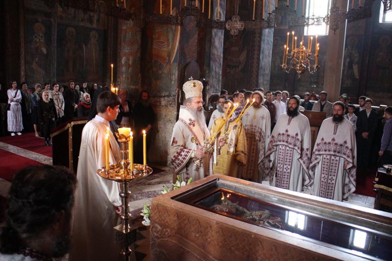 Након славске литије Владика Теодосије благословио је славски колач и преломио га са игуманом манастира архимандритом Савом. На крају Св. Литургије Владика се обратио верницима беседом у којој је говорио о значају Вазнесења Христовог којим је људска природа у Васкрслом Господу удостојена да седи са десне стране Бога Оца и чиме јој је враћено богомдано достсојанство и људском роду и васцелој твари васпостављено вечно постојање у заједници Тројичног Бога.