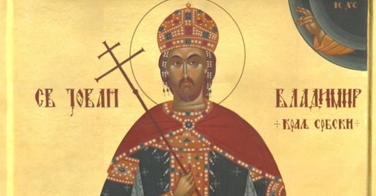Изађе једном свети Владимир у дубраву близу града, са три бољара, и виде орла унутра у шуми како кружи, а на плећи му сјајан крст блисташе, кога орао положи на земљу и поста невидљив. Они сиђоше с коња и поклонише се Христу, на Крсту распетом, а свети Владимир нареди да се на том месту црква построји, и даде прилог мног, и положи у цркву онај часни крст, те ту хођаше и по дану и по ноћи на молитву и свеноћна бдења. Још разуме, да се приближи време да прими венац мученички, за ким он и сам жуђаше.