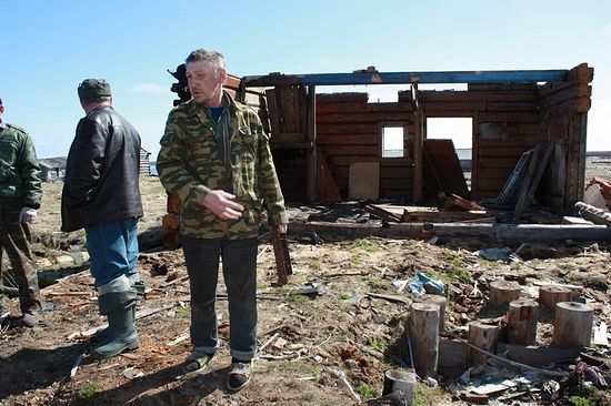 Когда-то старинная, основанная 440 лет назад, Куя процветала. Куйский православный приход (с соседними деревнями Пойловская и Андегская, а также выселками Нарыгинский и Просундуй) насчитывал до шестисот человек. В советское время здесь ловили рыбу, действовали рыбоприемный пункт и звероводческое хозяйство. Само собой, охотились. Колхоз «Харп» начал строительство фермы на 200 коров, но не успел – страна по имени СССР самоликвидировалась. И теперь на окраине деревушки, съежившейся до 67-ми проживающих, поднимаются стены белого кирпича, так и не подведенные под крышу. А еще при советской власти в Куе была уничтожена Георгиевская церковь. Остатки фундамента сохранились в центре села до сих пор. К ним и ведет нас Семен Торопов, мужчина лет под шестьдесят в камуфляжных брюках и такой же пятнистой зеленой куртке.