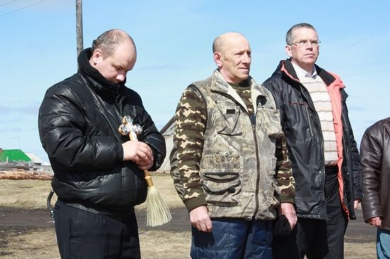 Епископ отслужил на месте, где поднимется часовня, молебен на начало доброго дела. Затем окропил его святой водой: