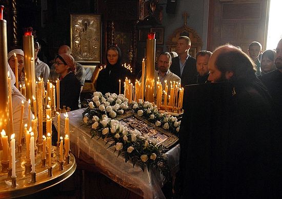 По окончании Божественной литургии был совершен молебен святителю и чудотворцу Иоанну перед ракой с его нетленными мощами и крестный ход вокруг собора.