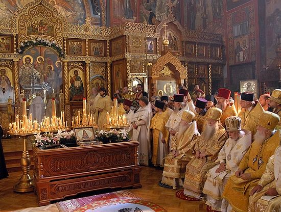 Богослужение совершал митрополит Восточно-Американский и Нью-Йоркский Иларион в сослужении Преосвященных членов Архиерейского Собора и православных иерархов, прибывших на празднества.