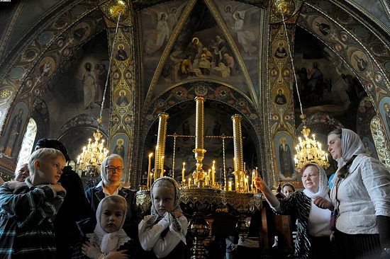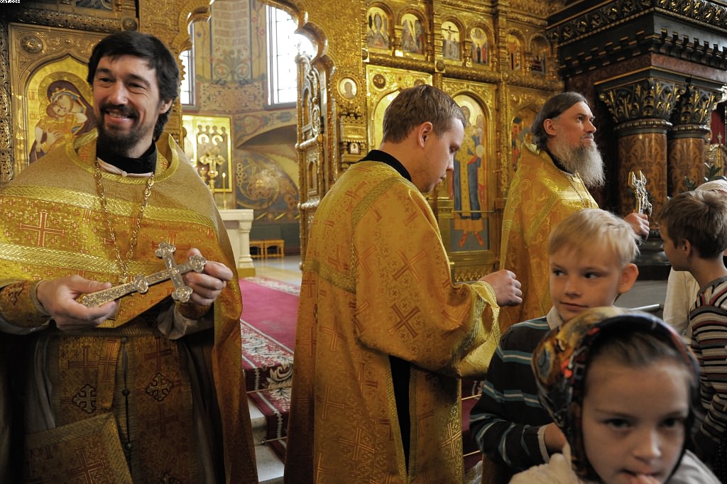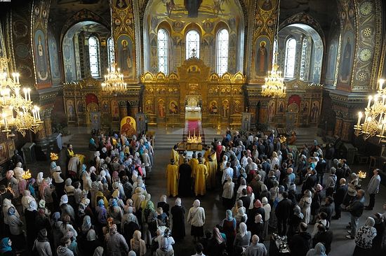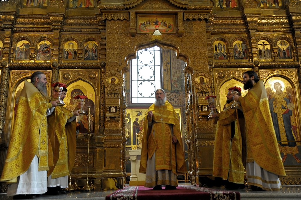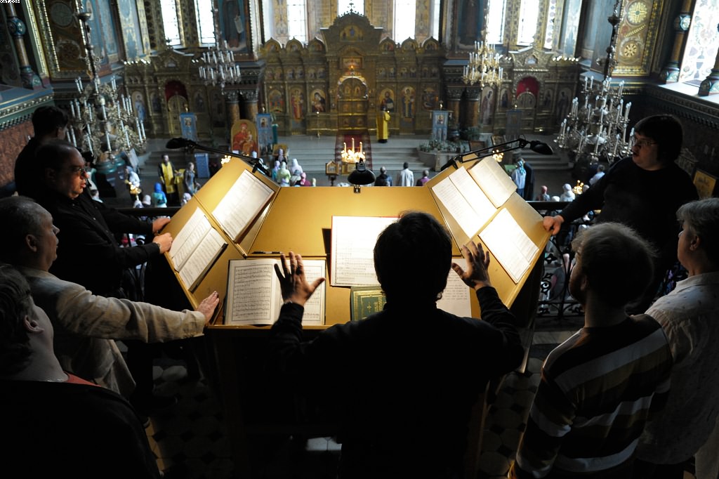 За богослужением пели певчие кельи святого Фомы святой горы Афон (Греция), регент - иеромонах старец Фома, и мужской хор "Оптина пустынь".