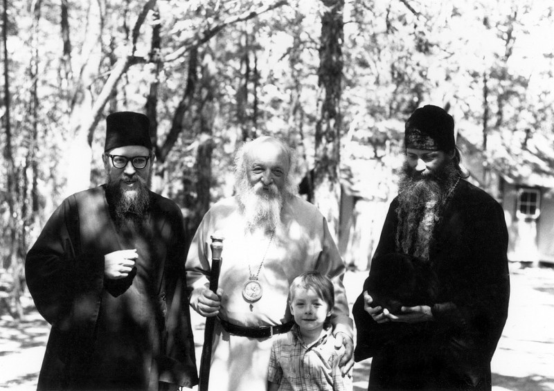 Архиепископ Сан-Францисский Антоний (1908–2000) с о. Германом, о. Серафимом и маленьким паломником. Скит Прп. Германа Аляскинского. 1979 г.