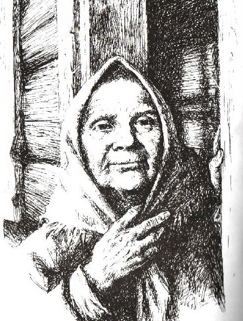 Невысокая, худенькая, одни и те же старые, не первой свежести тёмные кофта и юбка, засаленный платок на седых волосах. Ходила с трудом, видно, была больна, но чем – тоже никто не знал. Лицо приветливое, глаза добрые, но молчит или отвечает односложно.