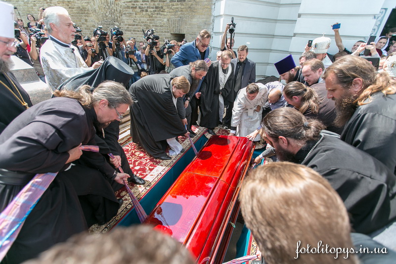7 июля 2014 года, в день Рождества славного Пророка, Предтечи и Крестителя ГосподняИоанна, на площади перед Успенским собором в Киево-Печерской лавре, где проходило прощание с новопреставленным Блаженнейшим митрополитом Киевским и всея Украины Владимиром была совершена заупокойная Божественная литургия, сообщает Патриархия.ru.