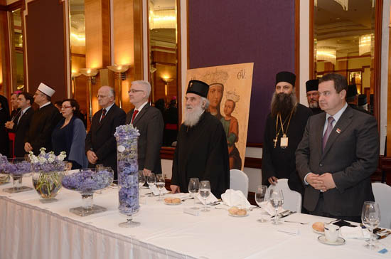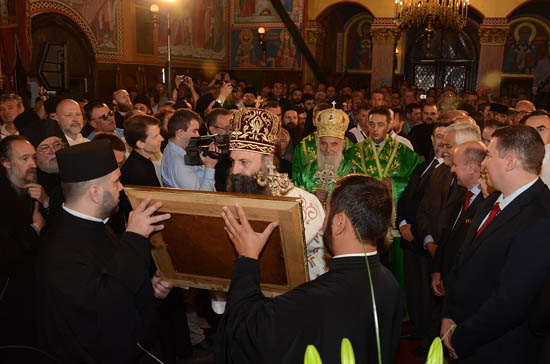 Дубоку благодарност изражавам митрополиту аркадијском г. Василију, представнику Антиохијске Патријаршије, из Сирије, где данас страдају хришћани, православни, католици, протестанти. Захваљујем Епископу карпасијском г. Христофору, представнику Кипарске Архиепископије, браћи свештеницима који су дошли из Грчке, Русије, Словачке и са других страна.
