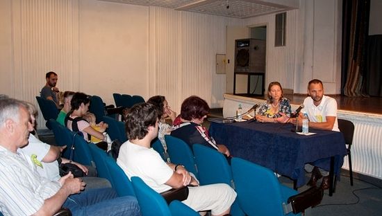 Учесници округлог стола – представник службе правне помоћи Координационог савета Виталије Бородин и породични психолог Јелена Клаус говорили су на тему «Билингвална породица у Србији».