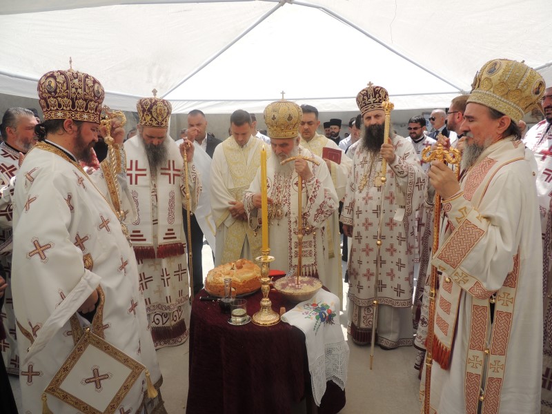 Након чина троносања саборног храма, служена је света архијерејска Литургија на којој су били присутни многобројни државни званичници, изасланици, представници других цркава и вјерских заједница те велики врој вјерног народа, како из епархије горњокарловачке, тако и из сусједних епархија. По окончању свете архијереске Литургије, Његова Светост патријарх српски г.г. Иринеј, осветио је и темеље новог епархијског дома, које се налази у склопу храма. У пригодној бесједи патријарх је нагласио значај данашњег освећења за читав народ епархије горњокарловачке, као и за православну Цркву у Хрватској. Својим појањем свечаност је увеличао и хор саборног храма из Загреба.