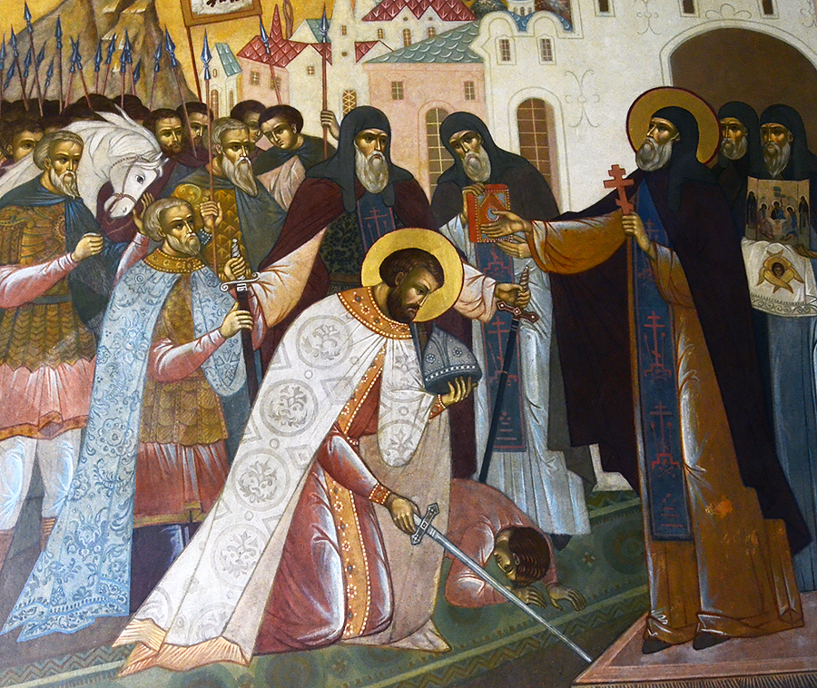 — Ваша Светости, добро је познато да је војницима који су ишли на Куликово поље, на челу са кнезом Димитријем Донским, духовна подршка Сергија Радоњешког била веома важна. Али зашто? Када код Кључевског данас читате о осећају „моралне храбрости и духовне снаге, које је преподобни Сергије удахнуо руском друштву“, и о томе да је у таквом расположењу народ потом вековима живео, онда осећате да код нас садашњих значај светитеља већ јењава. И још једно питање које се често намеће: како се може објаснити учествовање у бици монаха Пересвета и Ослабље, који су напустили световни живот и посветили себе служењу Господу?