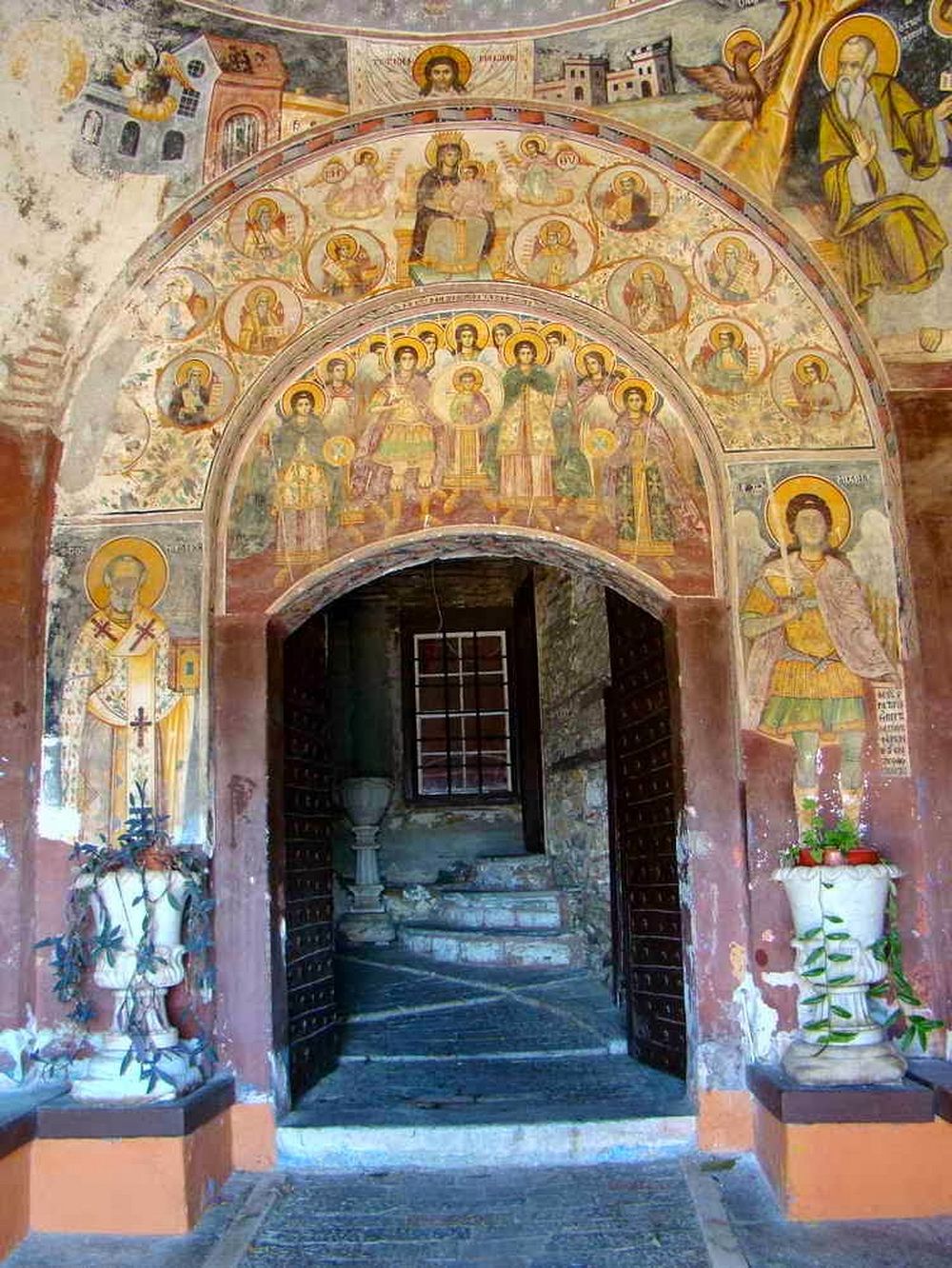 В центре города, в маленьком храме, украшенном прекрасными фресками, покоятся мощи двух самых любимых в Салониках святых – преподобной Феодоры Мироточивой и преподобного Давида Солунского…