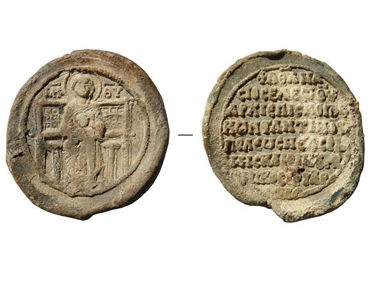 Уникальная печать была найдена в дьяконнике собора. Ученые отметили, что предмет выделяется среди других подобных крупными размерами и массивностью. Его вес составляет 64 грамма, размер — 41-45 миллиметров. На лицевой стороне запечатлено изображение Богоматери, сидящей на престоле. Она держит младенца Иисуса Христа. На обороте есть надпись на греческом языке: «Афанасий, милостью Божьей архиепископ Константинополя, Нового Рима и Вселенский Патриарх».