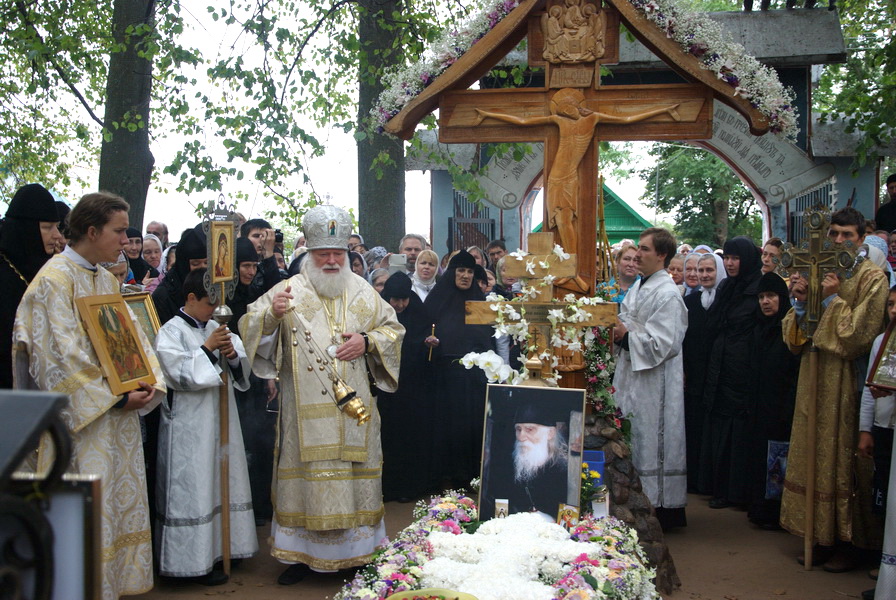 По окончании литургии во главе с владыкой все направились на кладбище к могиле покойного старца, где его Высокопреосвященством была совершения заупокойная панихида.