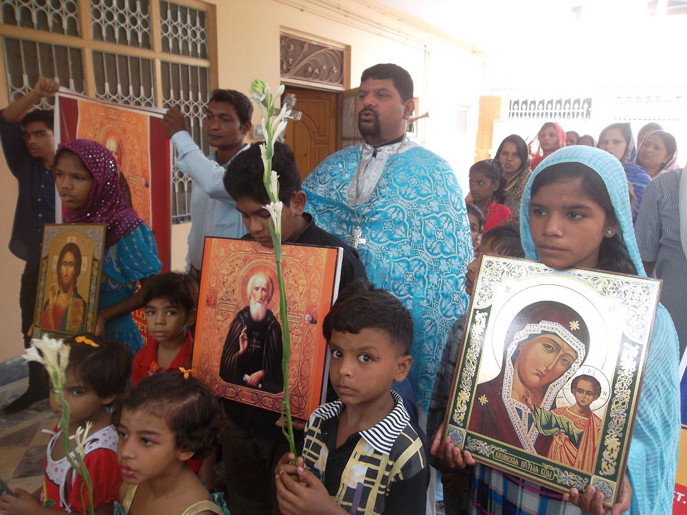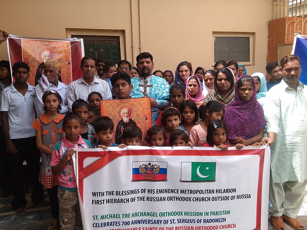 With the blessings of His Eminence Metropolitan Hilarion, First Hierarch of the Russian Orthodox Church Abroad, St. Michael the Archangel Orthodox Mission in Pakistan celebrated the 700th Anniversary of St. Sergius of Radonezh on August 18, 2014 at the St. Sergius Orthodox Church in Sargodha Pakistan with full zeal and zest. The solemn celebration opened with the procession followed by the festive Divine Liturgy. A prayer was made in the honor of St. Sergius of Radonezh, along with other prayers for the health of His Holiness Patriarch Kirill of Moscow and all Russia, His Eminence Metropolitan Hilarion, First Hierarch of the Russian Orthodox Church Abroad, for the Orthodox clergy and faithful, and for peace, unity, brotherhood and solidarity throughout the world.