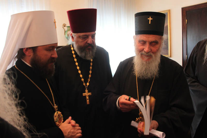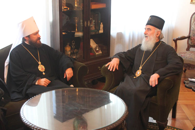 26 августа в здании Сербской Патриархии состоялась встреча митрополита Илариона со Святейшим Патриархом Сербским Иринеем. Во встрече приняли участие члены Священного Синода Сербской Православной Церкви митрополит Черногорский и Приморский Амфилохий, епископ Шабацский Лаврентий, епископ Зворничско-Тузланский Хризостом, епископ Рашко-Призренский Феодосий, а также епископ Бачский Ириней, епископ Браничевский Игнатий, протоиерей Виталий Тарасьев и секретарь ОВЦС по межхристианским отношениям иеромонах Стефан (Игумнов).