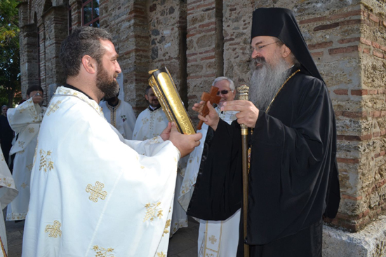 Пред сам крај свете Литургије обављен је обред Литије, освећења воде, резања и благосиљања славског жита и колача, након чега се Његово Преосвештенство Епископ Теодосије обратио присутнима беседом о значају и важности данашњег празника.