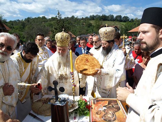 Његова Светост Патријарх српски г. Иринеј служио је јуче, на празник Успенија Пресвете Богородице - Велику Госпојину, свету архијерејску Литургију у Ражани код Косјерића у Епархији жичкој.