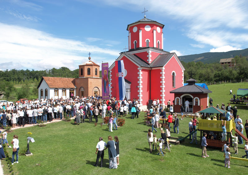 На литургијском сабрању поводом храмовне славе у Ражани, Његовој Светости Патријарху српском г. Иринеју је саслуживао Преосвећени Епископ жички г. Јустин. Више од педесет домаћина храмовне славе предводио је задужбинар г. Радмило Јевтовић.