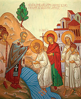 Once Queen Nana fell deeply ill, and only through the prayers of St. Nino was she spared from death. After this miraculous healing, King Mirian became intrigued by the Faith that St. Nino was preaching, and he began asking the newly enlightened Abiatar about the Holy Scriptures.