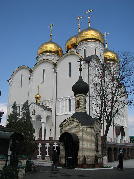 Удивительно, но, в сущности, за 6 последних лет жизни отец Зосима, возродив и старые храмы, возвел посреди донецкой степи почти что лавру. Причем, как сказали бы сегодня, с «евростандартом». Здесь все благолепно – старые и новые храмы, современного вида жилые и административные строения и растительные насаждения. Березовая аллея здесь приведет вас к огромному белому собору Успения Богородицы – копии одноименного собора Московского Кремля. Мы стоим перед Успенским собором Никольского монастыря и вспоминаем итальянского зодчего Аристотеля Фиораванти, даровавшего нам эту московскую красоту и самого, в свою очередь, вдохновившегося Успенским собором древнего Владимира. Тогда в Успенском соборе в Никольском, как водится на Пасху, был открыт алтарь, открыт пасхальный праздничный хлеб, а также икона «Сошествие во ад», – единственный иконописный образ главного праздника Православия. Страшное название, не правда ли? Не к сегодняшней ли нашей жизни?