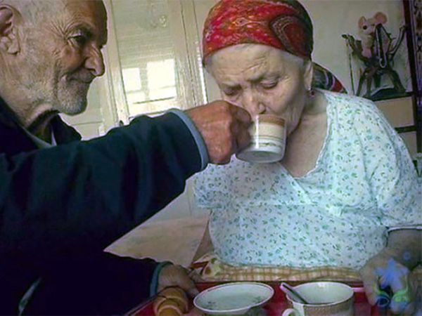 Этому старику 80 лет. Каждое утро он несет завтрак своей жене, которая живет в доме престарелых, и собственноручно ее кормит. Однажды я спросил его:
