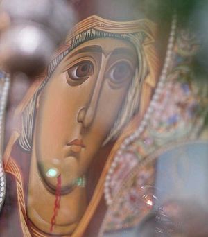По свим канонима иконописања (пост, молитва, кропљење даске светом водом, растварање боја у светој води, служење Литургије) копију чудотворне иконе је насликао сабрат руског манастира Светог Пантелејмона – монах Јанис. Свечано, у литији, икона је обишла многе парохије у Донбасу.