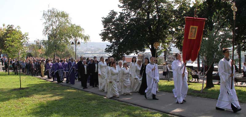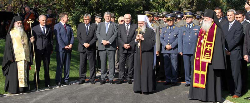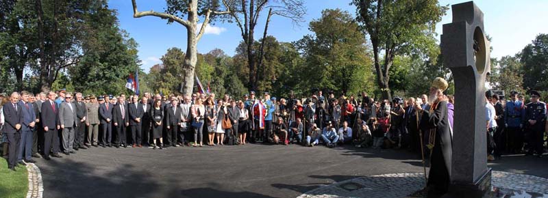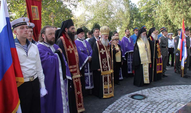 После помена, уз звуке црквених звона поворка се, на челу са Његовм Светошћу Патријархом српским г. Иринејем, упутила у Калемегданску тврђаву, где је одржана свечана церемонија откривања и освештања спомен-обележја у част руских и српских војника који су у току Првог светског рата бранили Београд код Калемегдана.