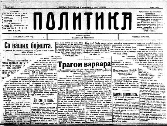 Слична су зверства забележена и у другим селима.” Ова вест, објављена у „Политици” 25. септембра (12. септембра по јулијанском календару) 1914. године, само је један од описа ратних страхота које је тих дана бележио наш најстарији лист.