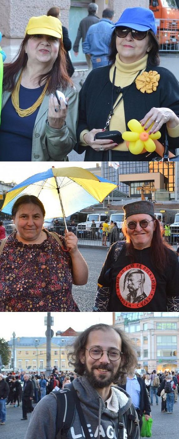 Стоит привести потрясающую по-своему иллюстрацию этой самозамкнутости. Это — восторженный фоторепортаж столичного юмориста Леонида Каганова, сделанный им на антироссийском марше 21 сентября в Москве. В публикации поражает не столько сам подбор персонажей, выдающих себя себе же за народ России, сколько то, что автор не заметил явной подставы со стороны моделей и всерьёз восхищается коллективной картинкой вместо того, чтобы смущённо сжечь фотоаппарат.