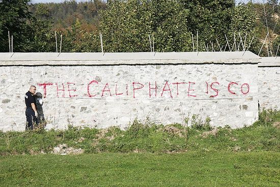 На нескольких хозяйственных постройках написано черной и красной краской UCK (Армия освобождения Косова), АНА (Албанская национальная армия), ISIS (Исламское государства Ирака и Сирии, в русской транскрипции ИГИЛ), «Халифат грядет» («The Caliphate is Coming»), а также надписи, напоминающие арабскую вязь. Ближайший объект, на котором появились граффити, расположен в 300 метрах от монастырского храма.