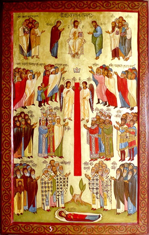Икона Слава Грузинской Церкви, изображающая Животворящий столб и возлежашую под ним святую Сидонию с Хитоном на груди