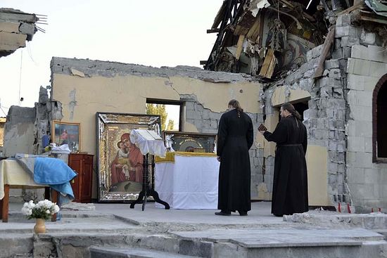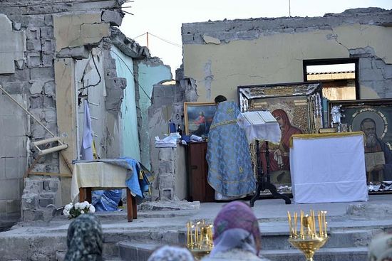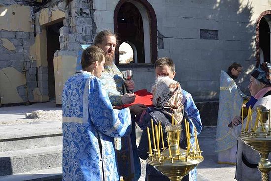 21 сентября, на праздник Рождества Пресвятой Богородицы, община храма в честь святого праведного Иоанна Кронштадтского собралась на первую после августовского обстрела Божественную литургию. Служба прошла под открытым небом — рядом с руинами церкви, которая не подлежит восстановлению.