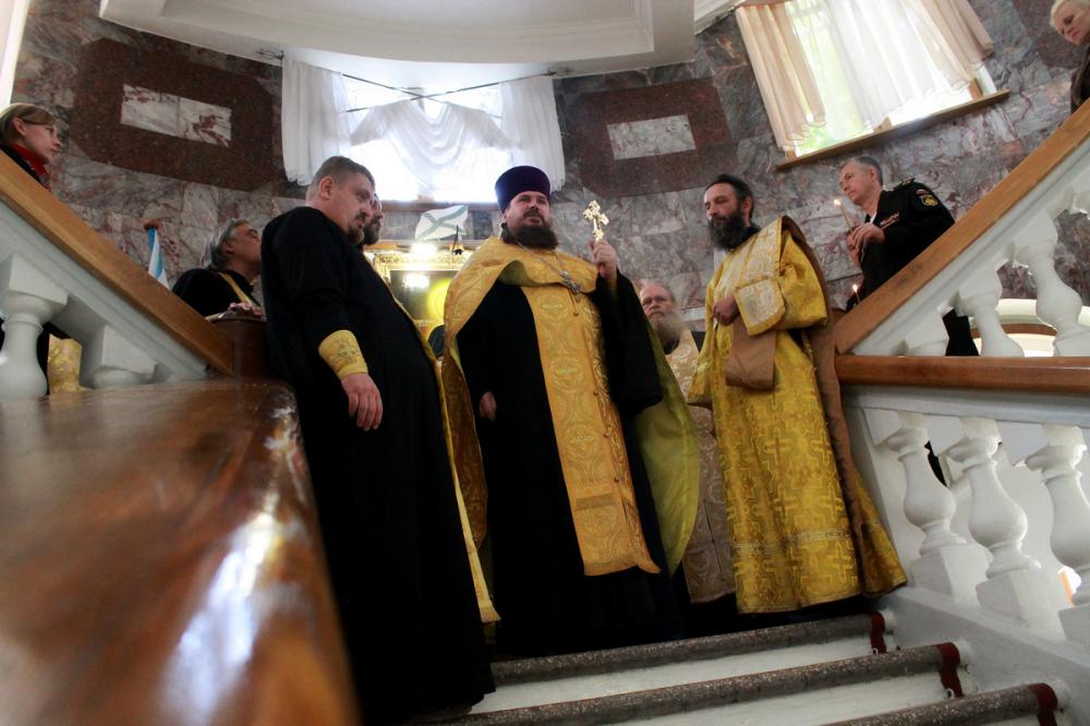 «Третий командующий Черноморским флотом, непобедимый воин, не проигравший ни одного сражения, адмирал, который заботился о моряках, святой праведный Феодор угодил Богу, прежде всего, как воин Христов, молившись за свою душу, молившись за души тех, кто был ему верен. Каждый из вас здесь стоящих, взирая на икону праведного воина Феодора Ушакова, наверное, думает: недостижима эта высота. Невозможно достичь той славы небесной, которой сподобился Феодор Ушаков. Но ведь праведный воин был рожден отцом и матерью, как каждый из нас. Богом ему был дан путь, ровно такой же путь дан и нам», — сказал отец Сергий, обращаясь к собравшимся по окончании молебна.