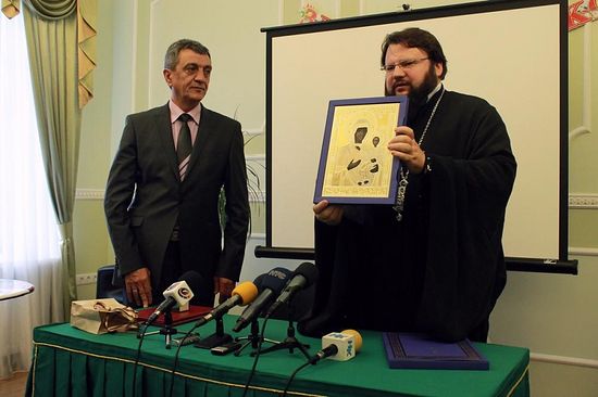 Помимо этого, рассказал Его Преосвященство, одной из целей визита является обмен опытом взаимодействия между Церковью и государственной властью и наработками в различных областях деятельности. На пресс-конференции присутствовал и губернатор Севастополя Сергей Меняйло. «Севастополь сегодня — лицо России, и это лицо должно быть красивым. Мы будем делать для этого все возможное — совместно с вами, конечно же», — сказал Сергей Меняйло, обращаясь к владыке Исидору и благочинному Севастопольского округа протоиерею Сергию. Владыка Исидор передал в дар Сергею Меняйло и отцу Сергию образ Пресвятой Богородицы «Одигитрия». Также были вручены памятные подарки для Правительства и Законодательного собрания Севастополя от Смоленской областной Думы.
